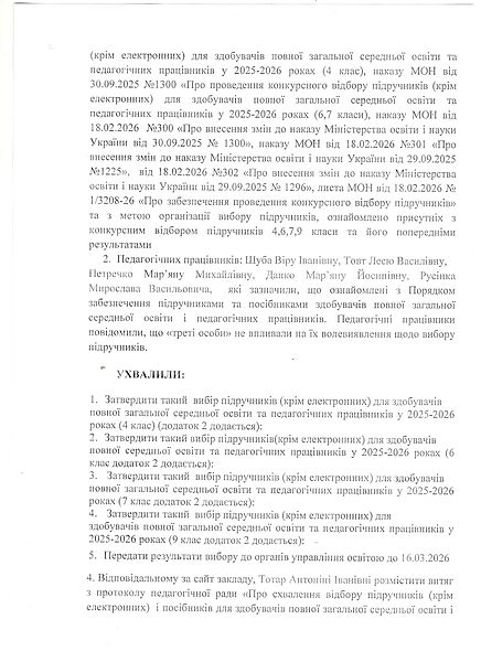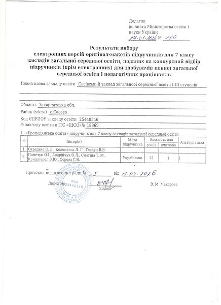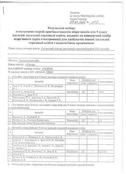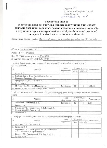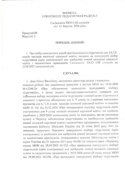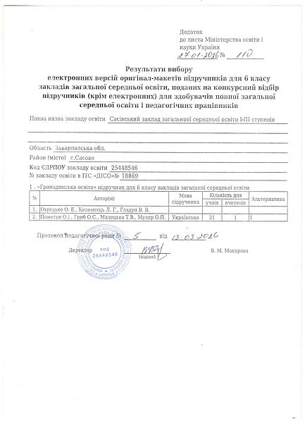 Вибір електронних версій оригінал - макетів підручників 4,6,7,9 класів Сасівського закладу загальної середньої освіти І-ІІІ ступенів на 2026 - 2027 н.р.